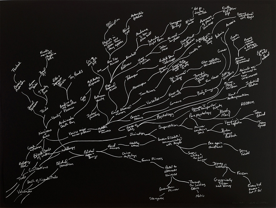 mirrors, pins and ink on paper