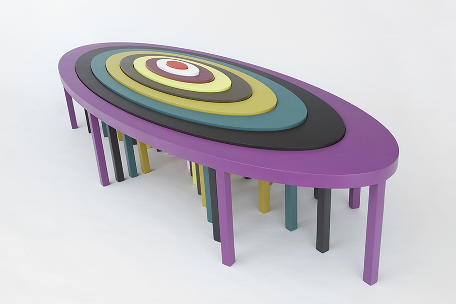 Household oil enamel on MDF and hardwood panel, primer spray paint