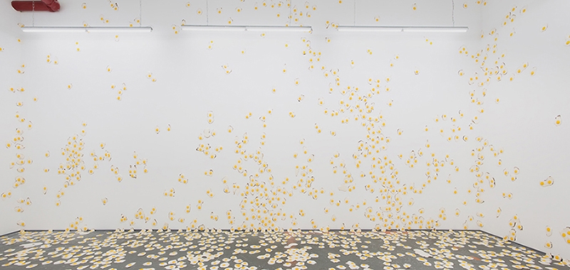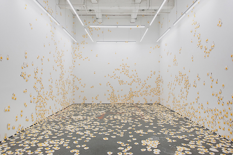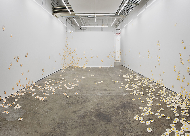 Installation view, Christopher Chiappa,fried egg paintings, 2011