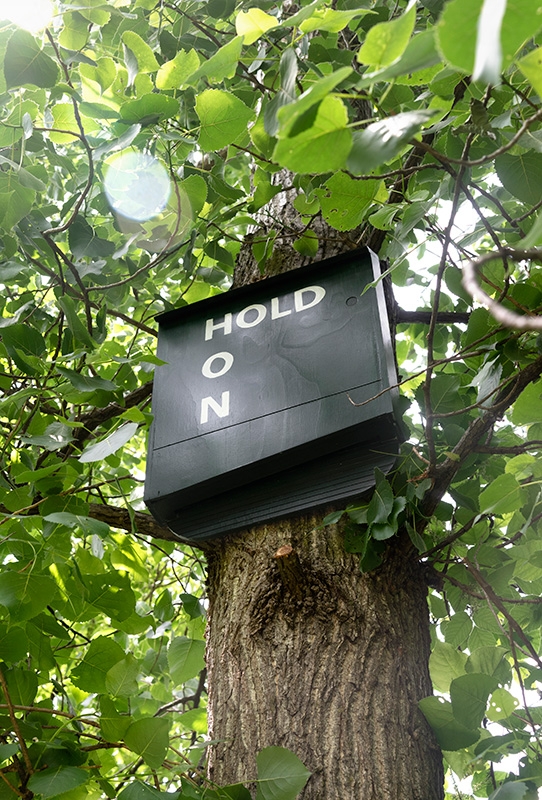 Plywood, 2x4s, Hardware, Transducers, Two sound recordings, zine